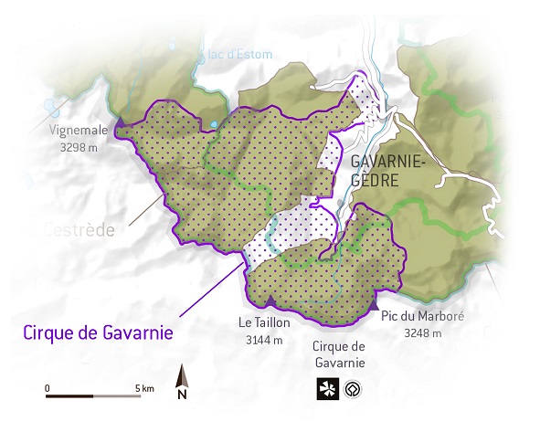 Quasi exclusivement situé sur la rive gauche du gave de Gavarnie, il se trouve au sud du département et s’étend sur le territoire administratif de deux communes : Gavarnie et Gèdre.