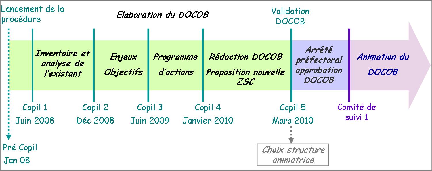 Les étapes de l'élaboration du DOCOB puis de sa mise en oeuvre :