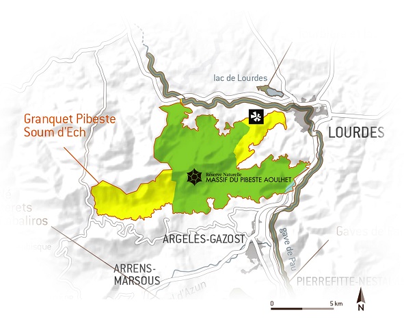 Le site "Granquet, Pibeste et Soum d’Ech" est situé à la croisée de 5 vallées principales : la vallée de l’Ouzoum à l’Ouest, la vallée du Gave de Pau au Nord, la vallée de Batsurguère à l’Est et les vallées du Bergons et d’Argelès-Gazost au Sud et à l’Est.