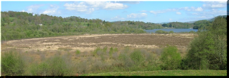 Entre ces deux entités se tient le lac de Lourdes, visible de l’embarcadère et de quelques endroits de la route, sur les versants du lac. La partie occidentale du lac, occupée par une vaste tourbière, est bordée par le golf. À l’est du lac, l’embarcadère accueille une grande affluence touristique en période estivale. Ce paysage contrasté s’accompagne d’un arrière-plan montagneux accentuant le caractère natural du site.